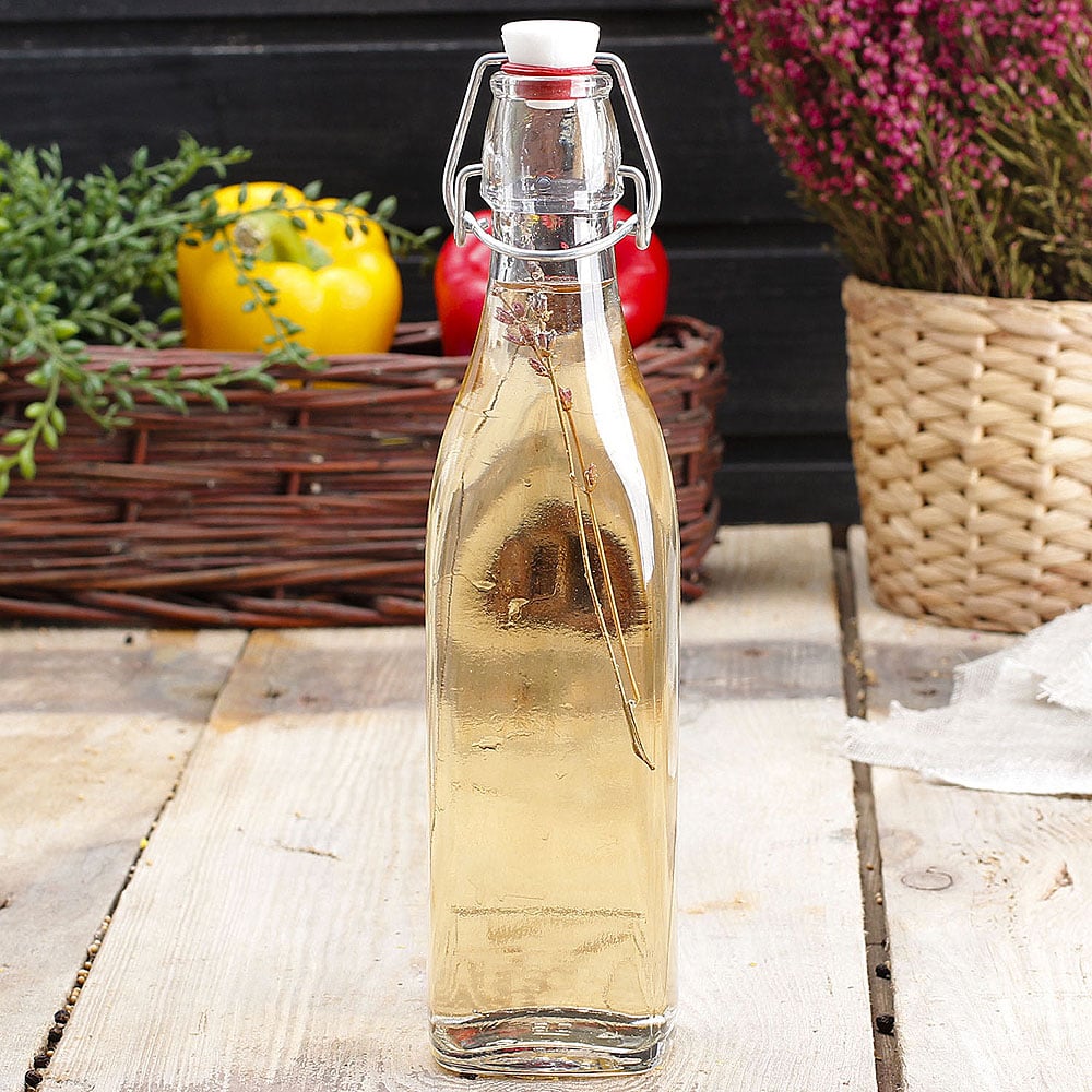 ищите значокУниверсальная стеклянная бутылка с пробкой объемом 500 мл от итальянского производителя Bormioli Roсco.