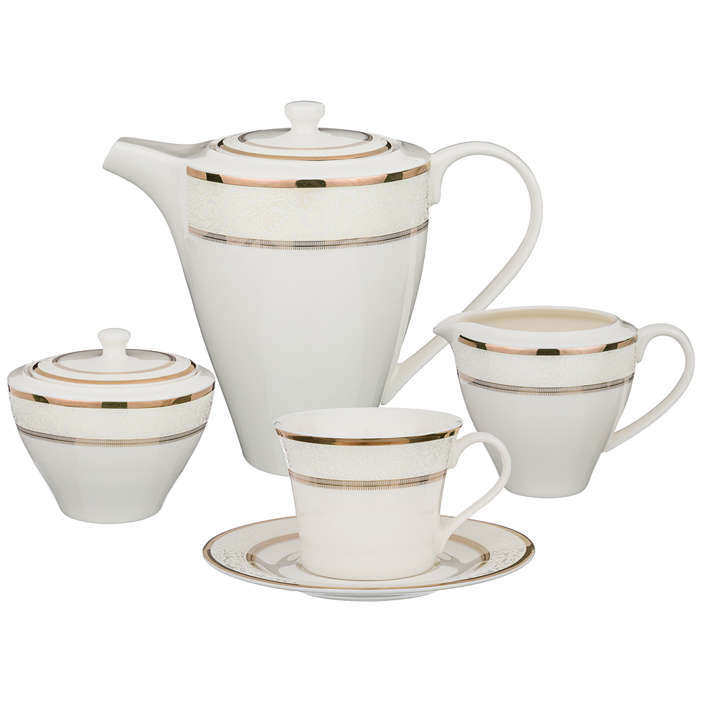 ищите значокНезабываемое чаепитие с набором Tea Ceremony Turk. Тонкостенный фарфор. Посуда прошла сертификацию. Безопасна для контакта с пищевыми продуктами. Форма в виде кофейной турки. Стильный светло-серый цвет в сочетании с декорированными блюдцами с золотой окантовкой. Это украшение любого интерьера и отличный подарок. Нельзя использовать в микроволновой печи, не рекомендуется мыть в посудомоечной машине.