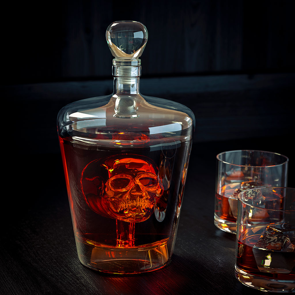 ищите значокБлагородный алкогольный напиток требует правильного оформления и подачи в соответствующей таре. Если хочется удивить своих гостей и просто привнести разнообразие, то стоит обратить внимание на декантер для напитков Poison Skull. В комплекте поставляется стеклянная пробка, которая дополняет картину. Декантер предназначается для коньяков, виски, ликеров и других темных напитков.