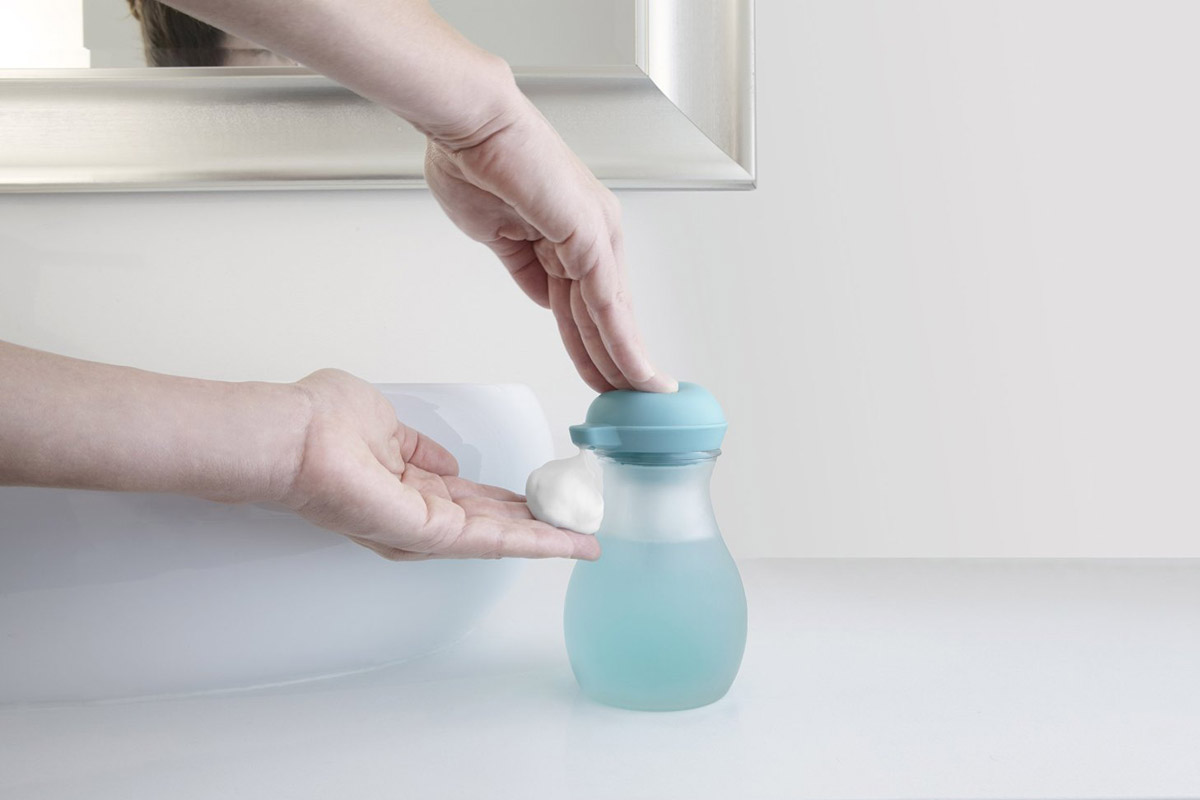 Диспенсер для пенного мыла Bubble blue, 17 см, 15  см, Стекло, Силикон, Umbra