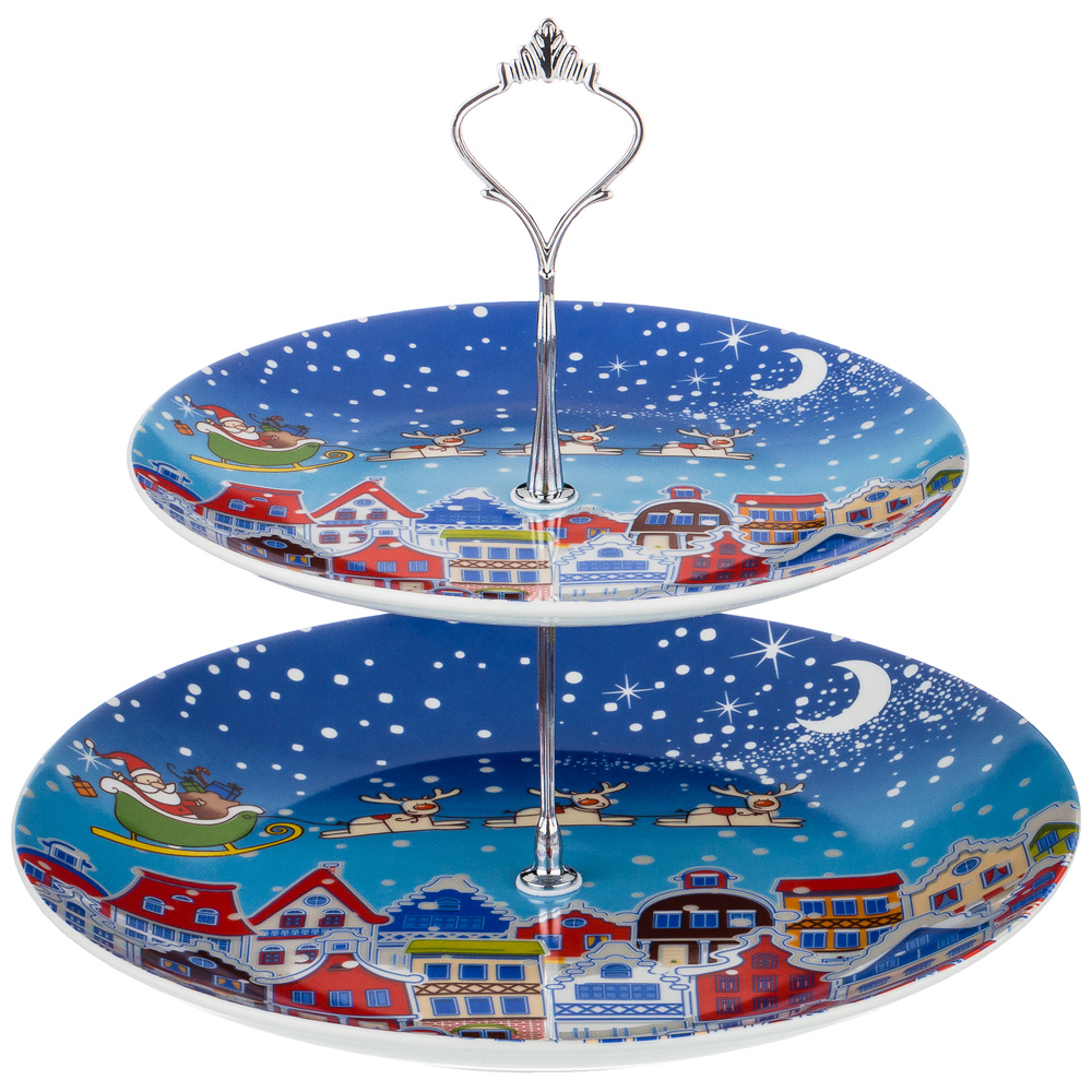 ищите значокДвухъярусная этажерка Lefard из Новогодней серии будет уместна на торжественном приеме и в повседневной жизни. Диаметр тарелок 20 и 27 сантиметров.