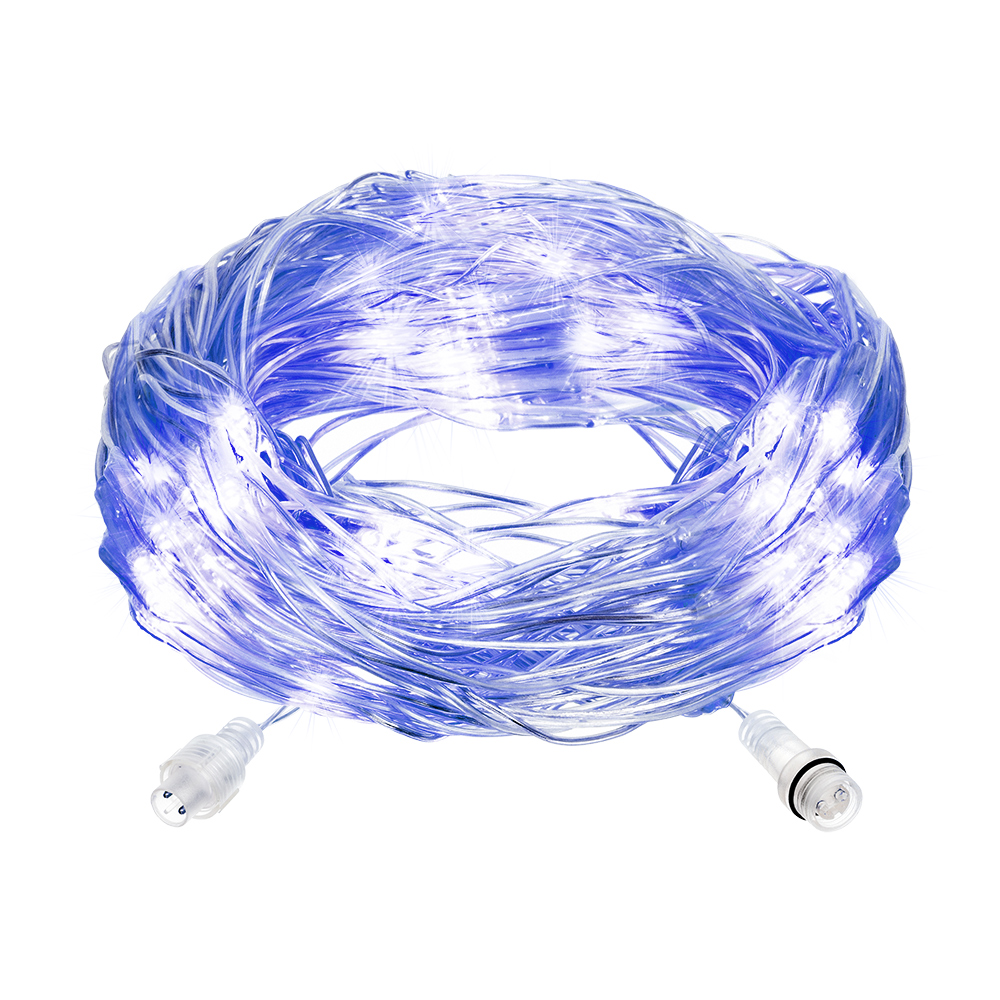 Цвет свечения синий, режим свечения статика, цвет провода прозрачный. Степень защиты IP 44. Мощность 2,88 W.