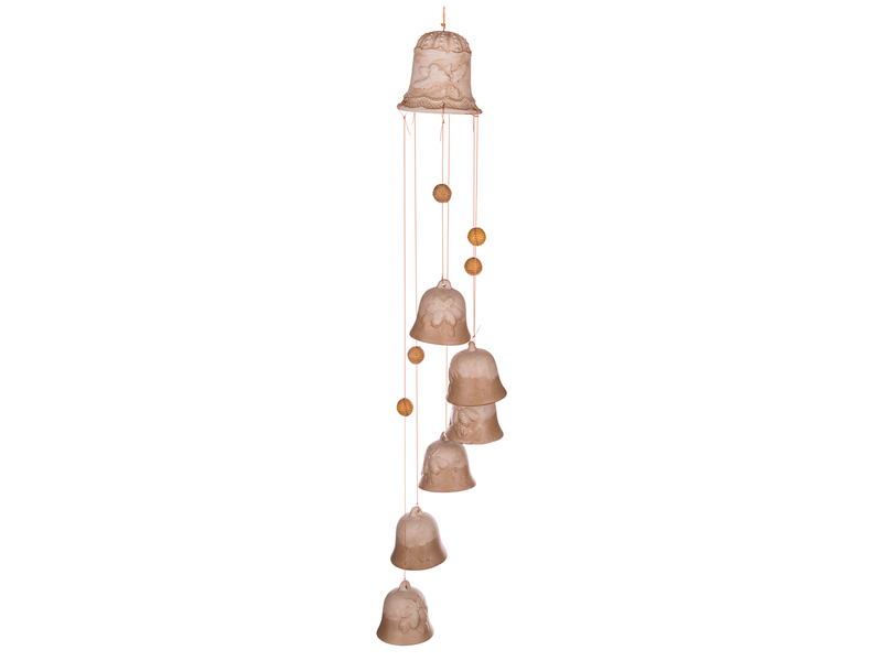 ищите значокРождественские керамические колокольчики на дверь с барельефным изображением еловых веток с шишками.