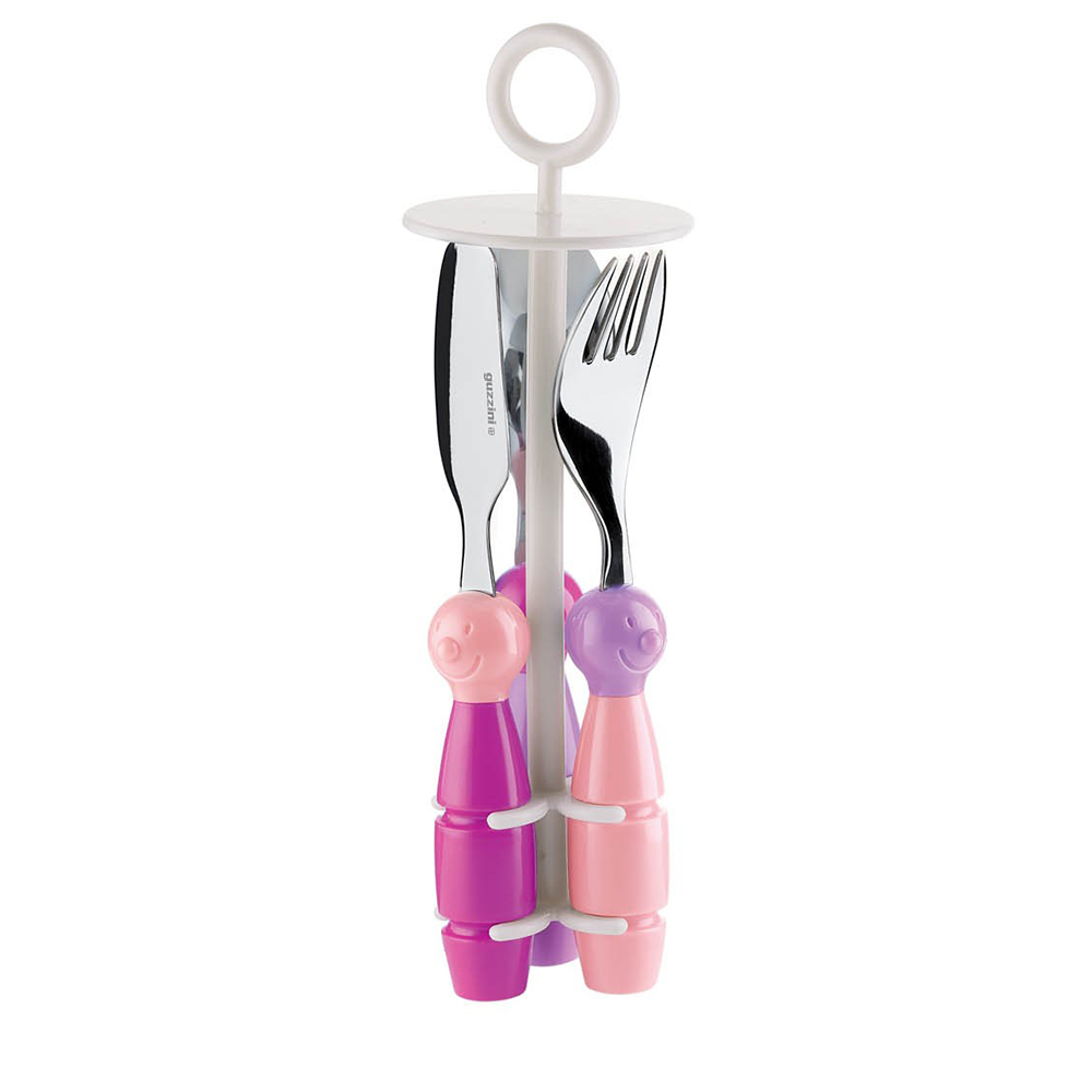 Набор является частью специальной детской серии Bimbi, которая включает в себя столовые приборы, посуду и аксессуары, украшенные забавными мордочками и рисунками животных. Привнесенный элемент игры создаcт веселую атмосферу за столом, а значит каждый прием пищи пройдет легко и доставит удовольствием как детям, так и их родителям.