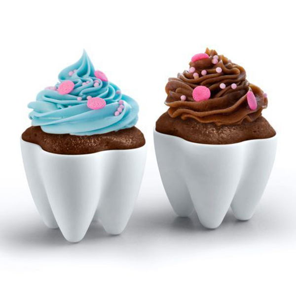ищите значокОсвежите свои знания о том, как делать вкусную выпечку и угостите гостей кексами, сделанными в форме Sweet Tooth. Каждый силиконовый зубик обладает идеальными размерами для того, чтобы испечь совершенное пирожное и вонзить в него свои зубы! Набор из 4 штук упакован в яркую подарочную коробку.