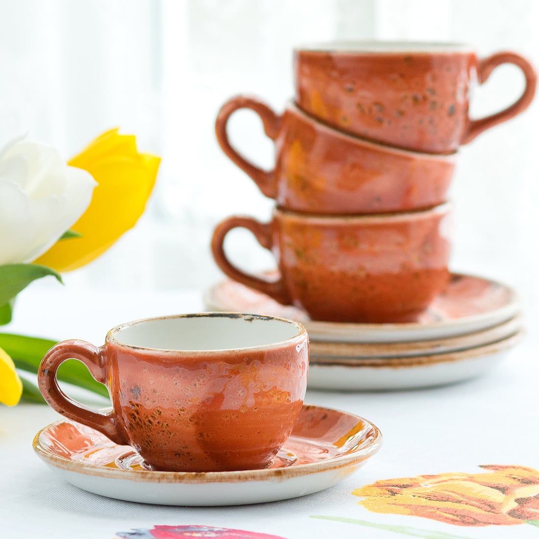 ищите значокНабор 4-х фарфоровых кофейных пар из серии Craft Terracotta. Чашки объемом 85 мл, блюдца диаметром 11 см.