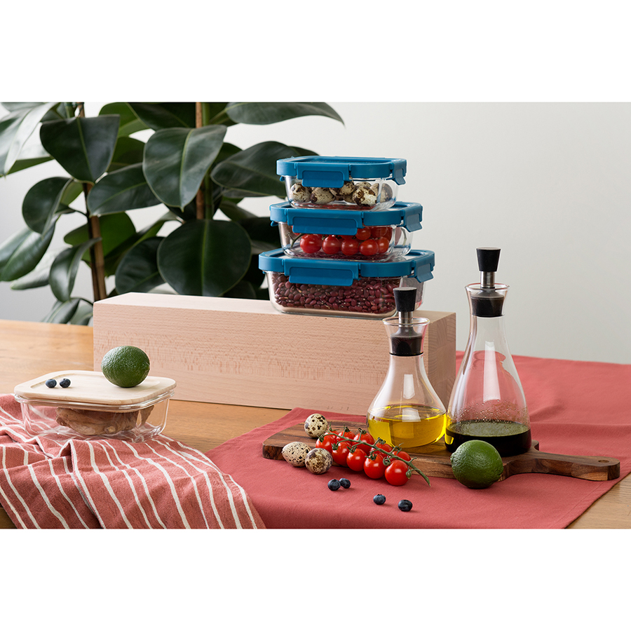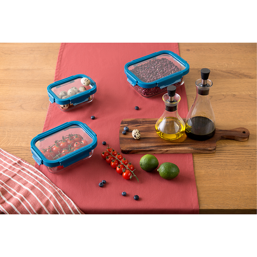 Набор пищевых контейнеров Glass Food square navy, 3 шт., 22х20,5 см, 116 см, 1,05 л, Стекло, Силикон, Пластик, Smart Solutions, Россия