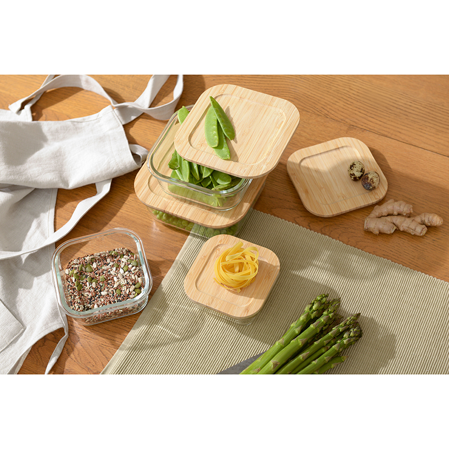 Пищевой контейнер Glass Food Bamboo square 520