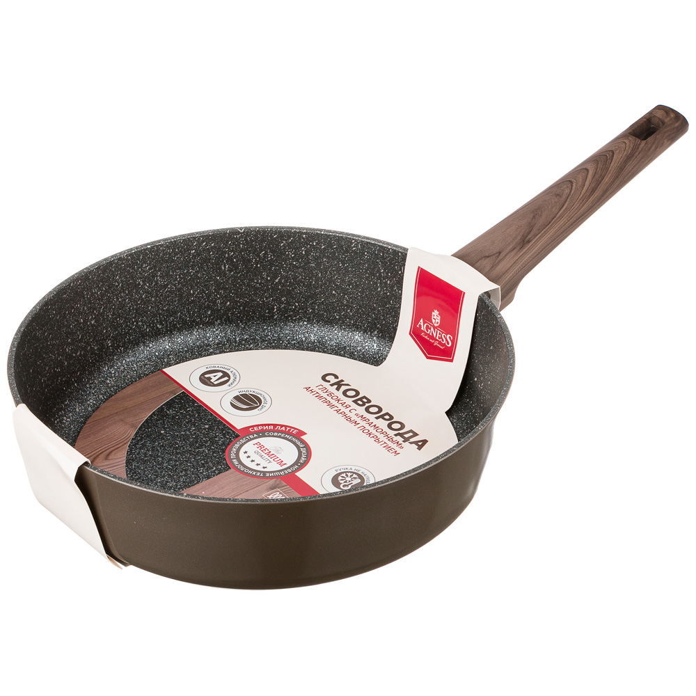 ищите значокСковорода Latte выполнен из кованного алюминия. Благодаря этой технологии корпус сковороды становится более прочным, износостойким и не подвержен деформации. Эргономичная ручка с покрытием soft touch позволяет использовать посуду без прихватки. Упрочненное "мраморное" антипригарное покрытие увеличивает срок службы. Подходит для всех типов плит, включая индукционные.