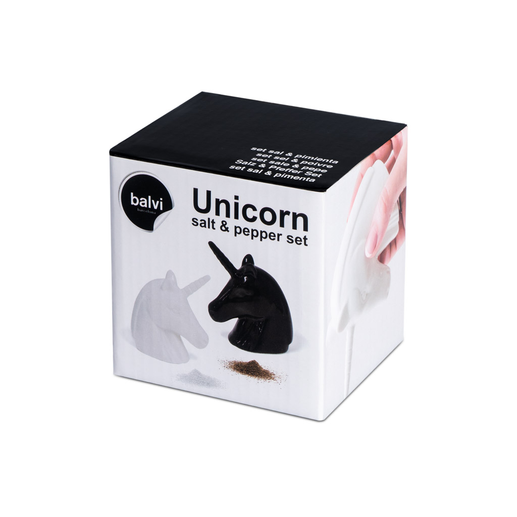 ищите значокВыбирая аксессуары для кухни, любая хозяйка стремится к тому, чтобы придать пространству индивидуальность и оригинальность. Представляем солонку и перечницу Unicorn, разработанную для нестандартно мыслящих людей. Дизайн предметов представляет собой двух единорогов: белый - для соли, черный - для перца. На дне у них пластиковая пробка, через которую удобно засыпать специи. Набор очень красивый и не похож на обычно принятые предметы кухонного обихода, и именно этим он привлекает внимание окружающих. Данные аксессуары непременно расставят акценты в помещении с любой обстановкой.