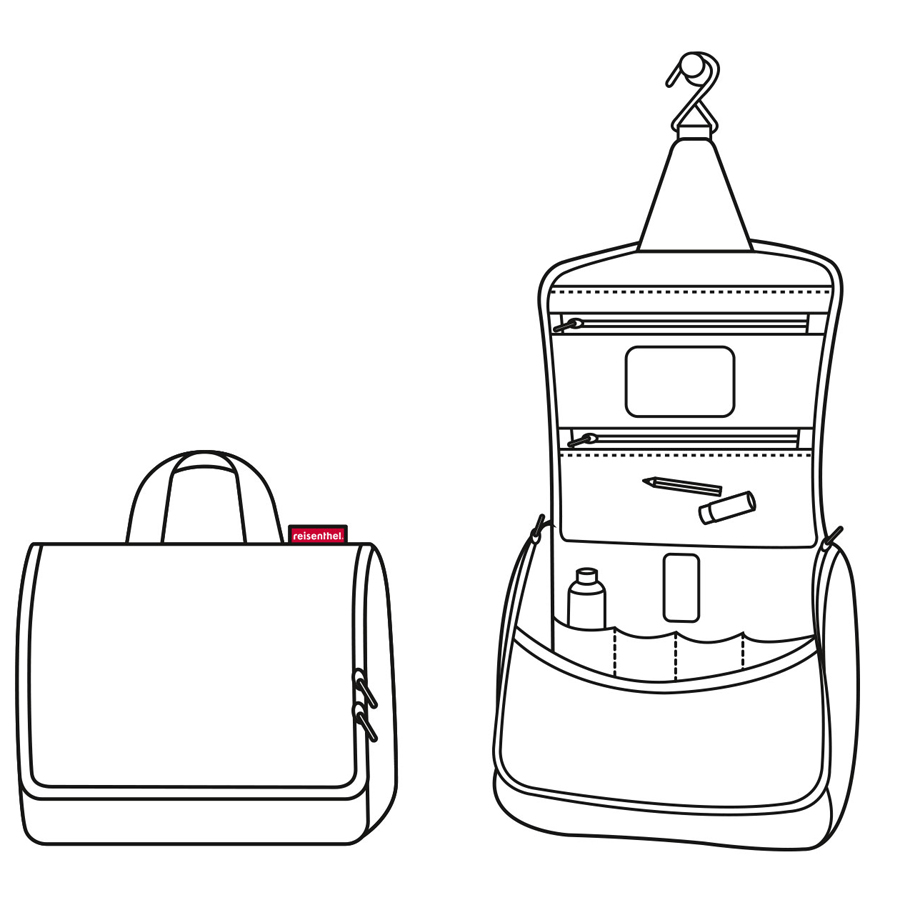 ищите значокПрактичная сумка-органайзер, очень удобная в поездках, а также в ванной или гардеробной: : вмещает все необходимое и позволяет хранить мелочи в идеальном порядке. - внутри сумки - 1 основное отделение и 4 кармана. Еще 2 кармана на молнии находятся на крышке с внутренней стороны; - специальный крючок позволяет подвесить органайзер в развернутом состоянии, облегчив доступ к косметике и аксессуарам; - съемное зеркало можно прикрепить к специальной липучке; - объем – 3 литра.