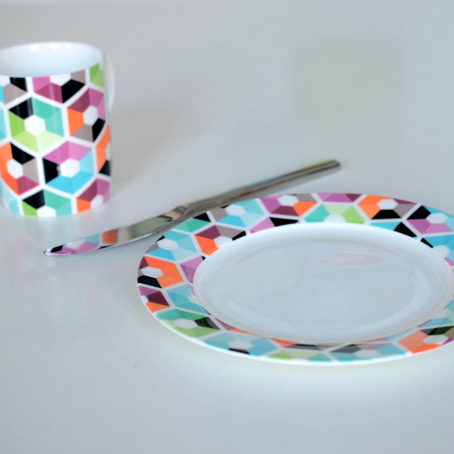 ищите значокМаленькая тарелка Hexagon выполнена из тончайшего фарфора, что придает ей не только благородный белый цвет, но и отличную износостойкость. Благодаря прекрасным эксплуатационным характеристикам такой материал будет служить верой и правдой долгие годы: он прочен и стоек к термической обработке. Посуда имеет оригинальный внешний декор в виде разноцветной окантовки бортиков. Благодаря яркому дизайну она добавляет в интерьер новых красок, поднимает настроение и радует глаз.