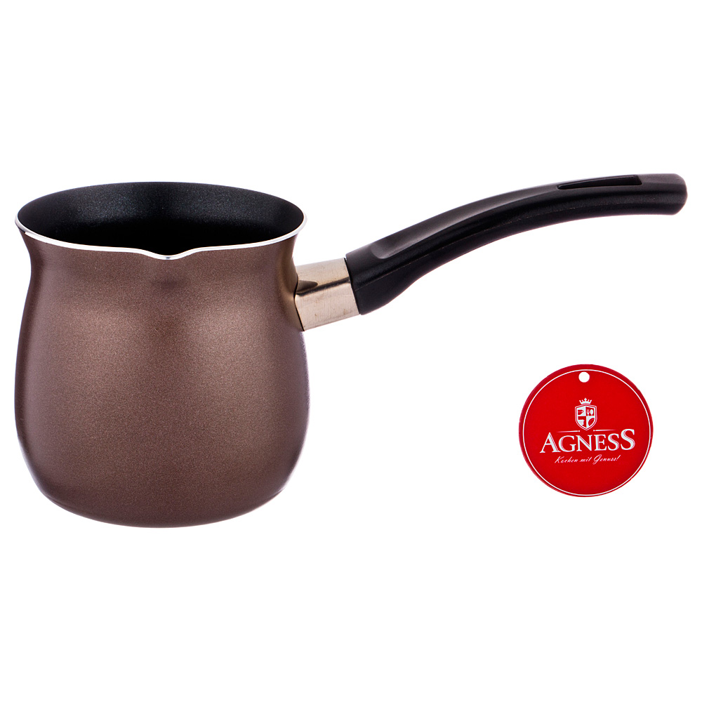 Турка с ручкой Soft Touch Marble chocolate 800, 600 мл, Алюминий, Agness, Китай