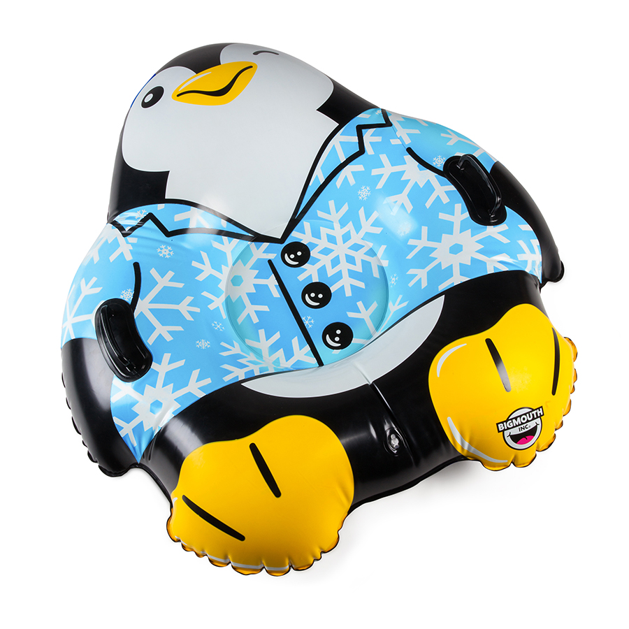 ищите значокВиниловый тюбинг в форме пингвина для зимнего катания с горки. Тюбинг имеет яркую расцветку и оригинальный дизайн. Изделие выполнено из высокопрочного винила soft touch, что делает его не только долговечным, но и комфортным в использовании. Усиленная проклейка швов и крепление деталей не позволит тюбингу порваться даже при использовании на сильно обледеневших поверхностях. Для удобства катания модель дополнена специальными ручками. Яркий и стильный тюбинг выделит своего владельца среди всех отдыхающих на склоне. Нестандартный дизайн добавит удовольствия катанию и не позволит потерять свой транспорт в суматохе после спуска. Тюбинг станет идеальным подарком как для ребенка, так и для взрослого. С таким ярким спутником зимние дни пролетят весело и беззаботно!